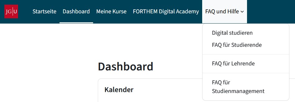 In der oberen Navigationsleiste finden Sie unter dem Menüpunkt FAQ und Hilfe Informationen und praktische Tipps für Studium, Lehre und Studienmanagement.